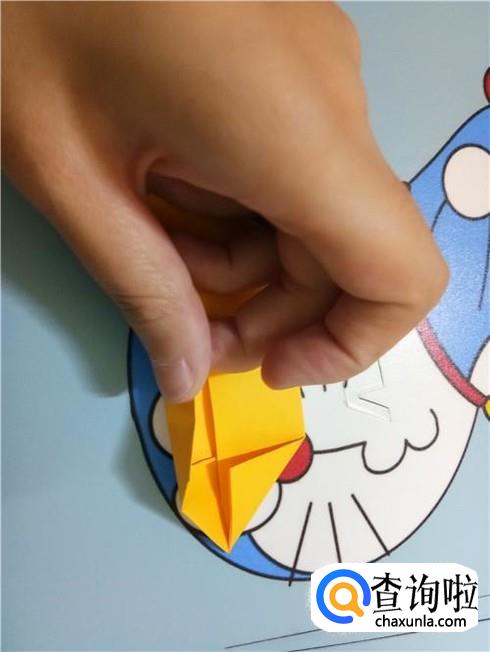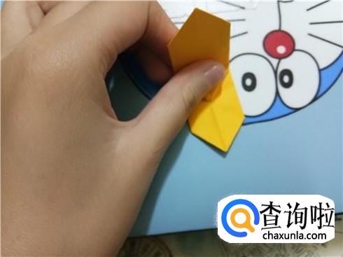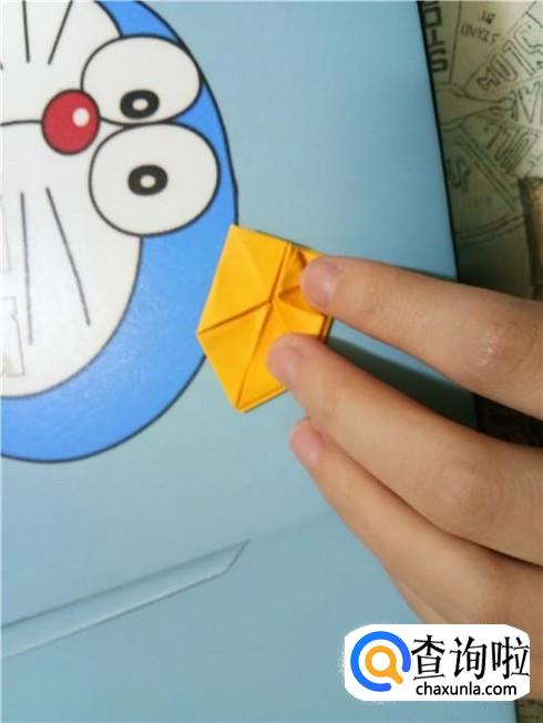 紧接着将它两边的开口处分别向后轻轻的折叠。