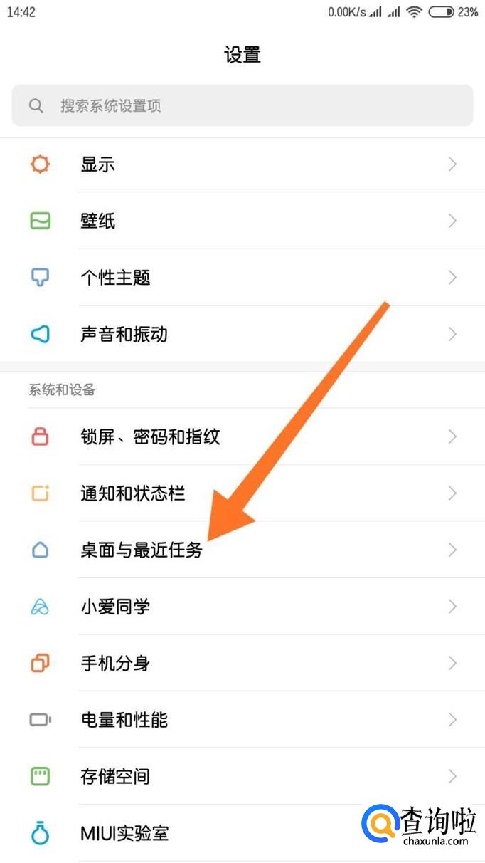 在“系统与设备”里面找到“桌面与最近任务”,点击打开。