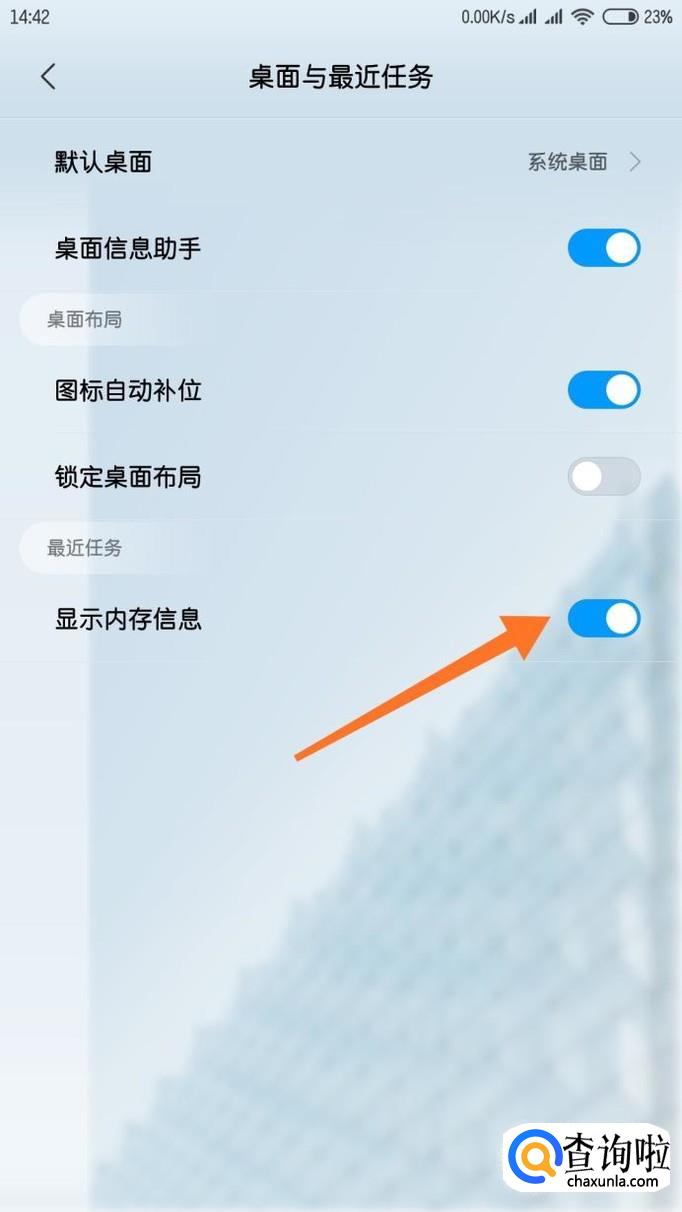 最下面有一个“显示内存信息”,点击右边的开关打开即可。