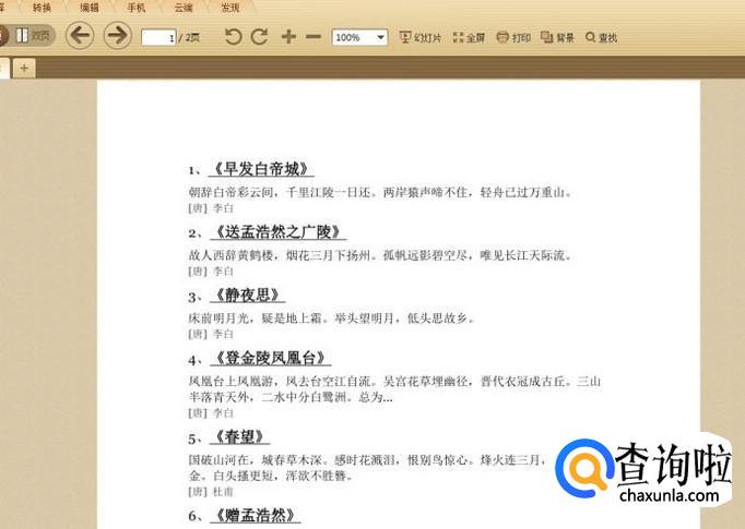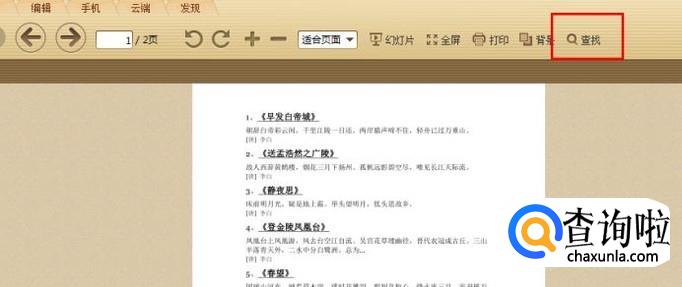我们的任务是找到“杜甫”两个字。点击菜单栏中的“查找”。
