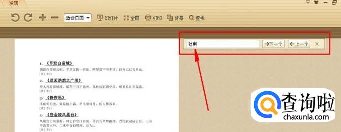 然后就会自动搜索,如图关键词“杜甫”就被搜索出来了,系统自动会选中方便你的查看。