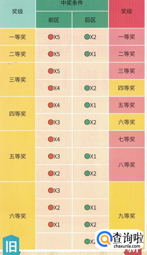 七等奖:投注号码与当期开奖号码中的任意3个前区号码及任意1个后区号码相同,或者任意2个前区号码及2个后区号码相同,即中奖;