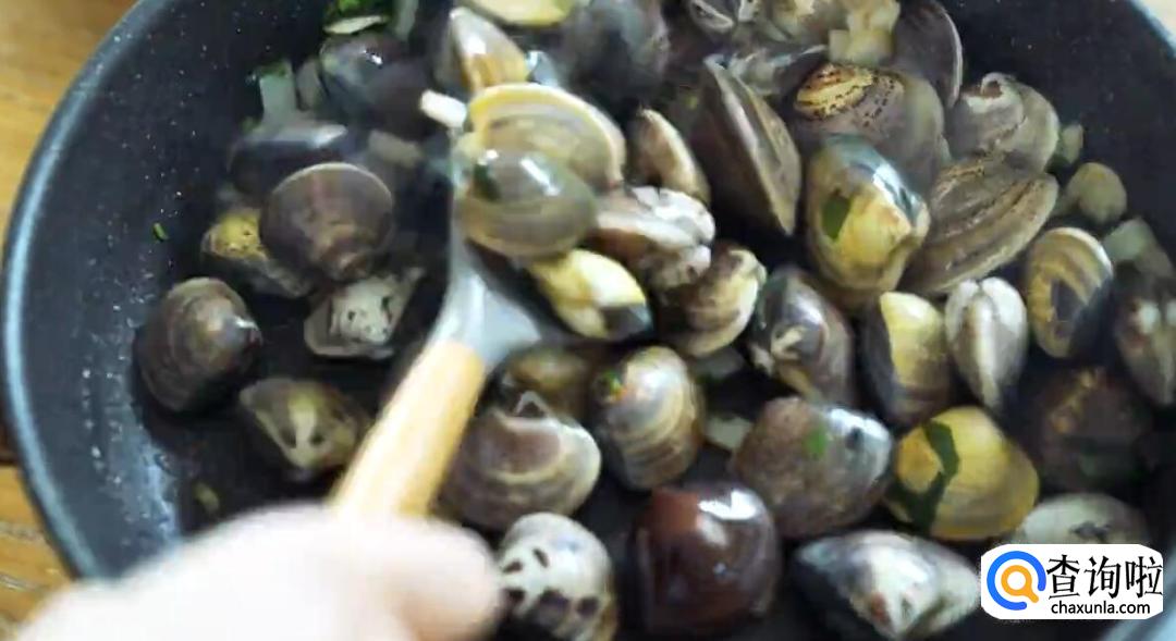 再加入蛤蜊进行翻炒。