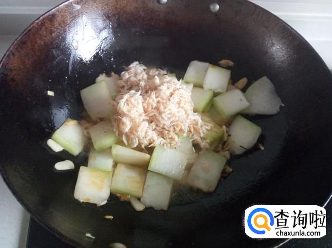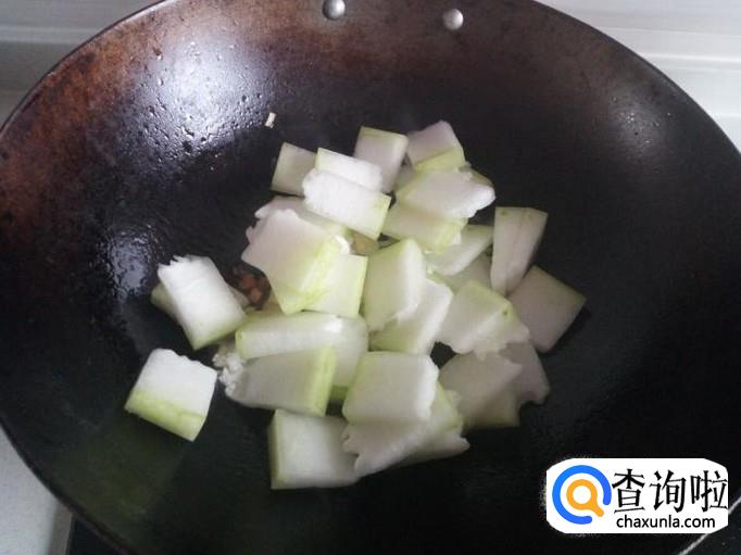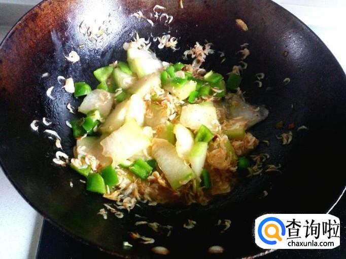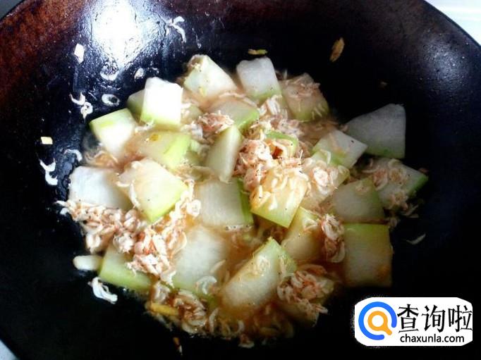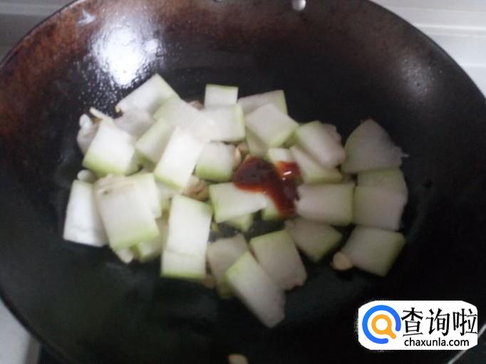 翻炒至冬瓜下汤汁,添加少量水,略烧一会。