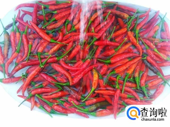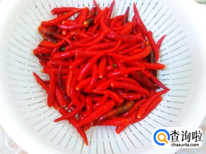 首先把小米辣清洗干净,捞上来沥干水分。然后把小米辣蒂梗去掉。
