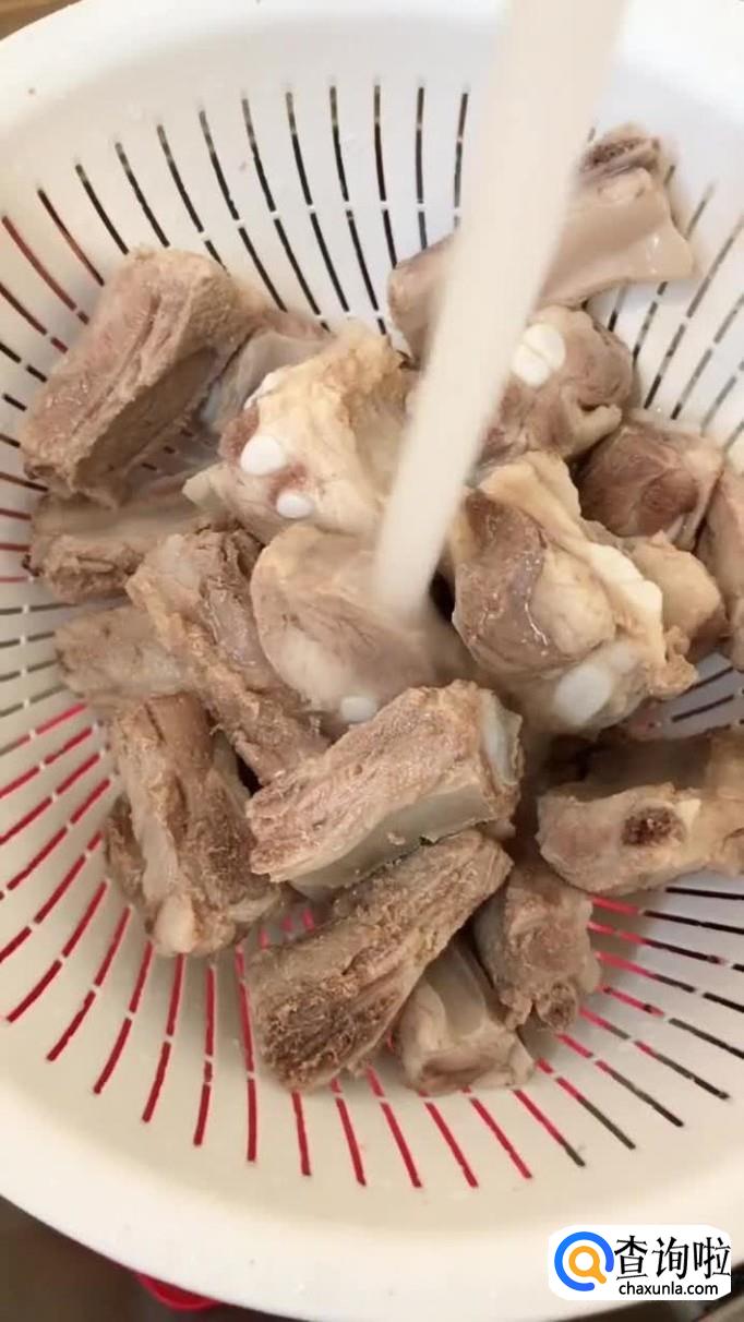 然后将烫好的排骨用白开水冲洗干净,如下图所示。