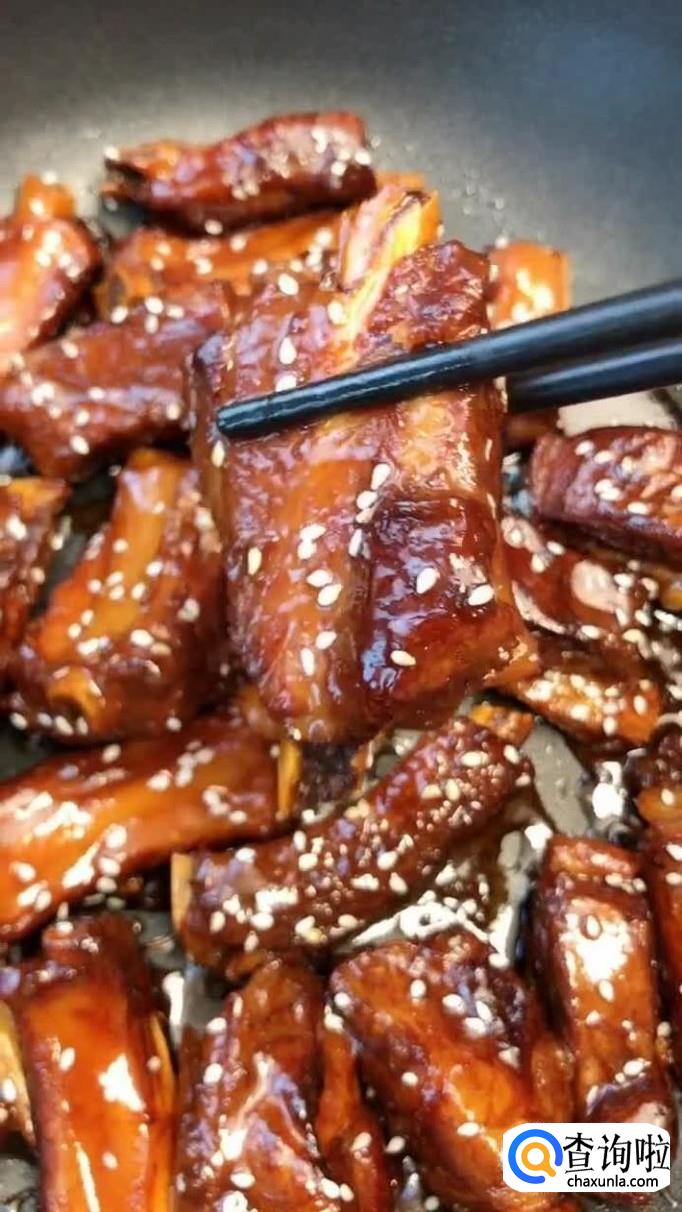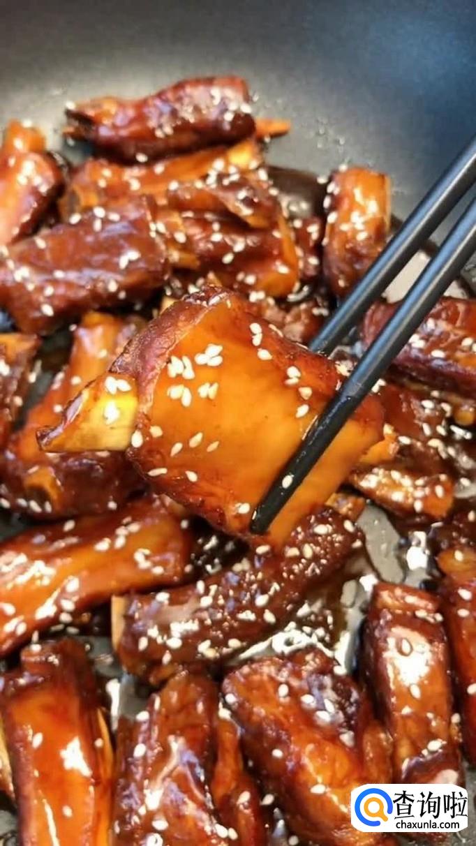 排骨,料酒,白糖,香葱,酱油,白米醋,清水,白芝麻。