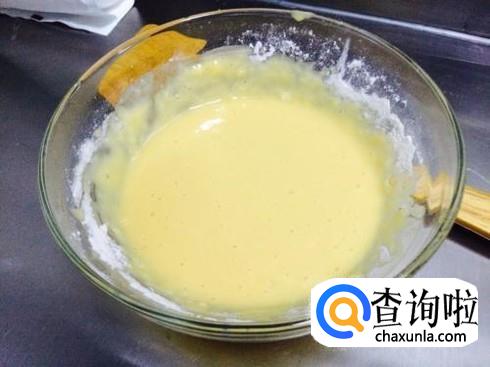 搅好面后,接下来开始打鸡蛋了,打好的鸡蛋放在一个大碗里,然后用搅鸡蛋器一直按一个方向搅圈圈,搅到鸡蛋黄不见,变到有很多白泡泡出来才行才梦进行下一步。