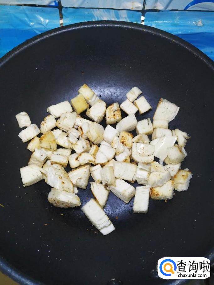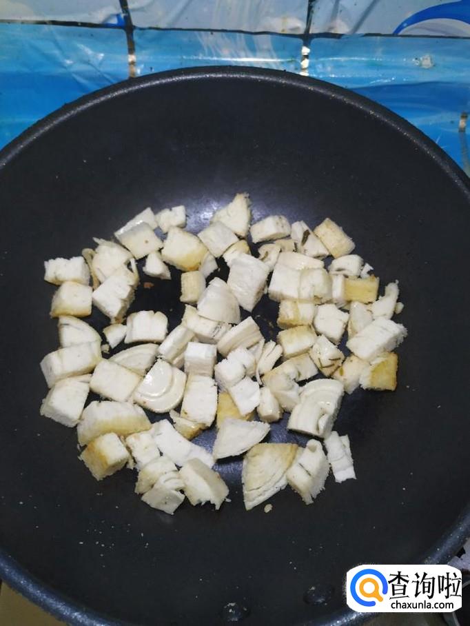 要快速搅拌,防止糊锅,看到馒头表面微微发黄就可以了,这样吃起来,口感外焦里嫩,特别好吃。