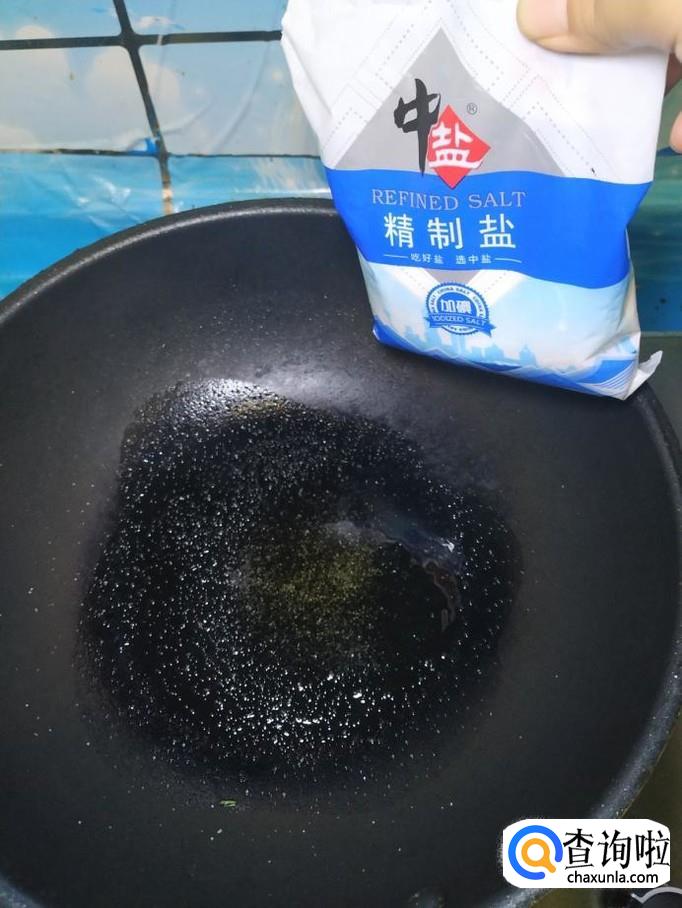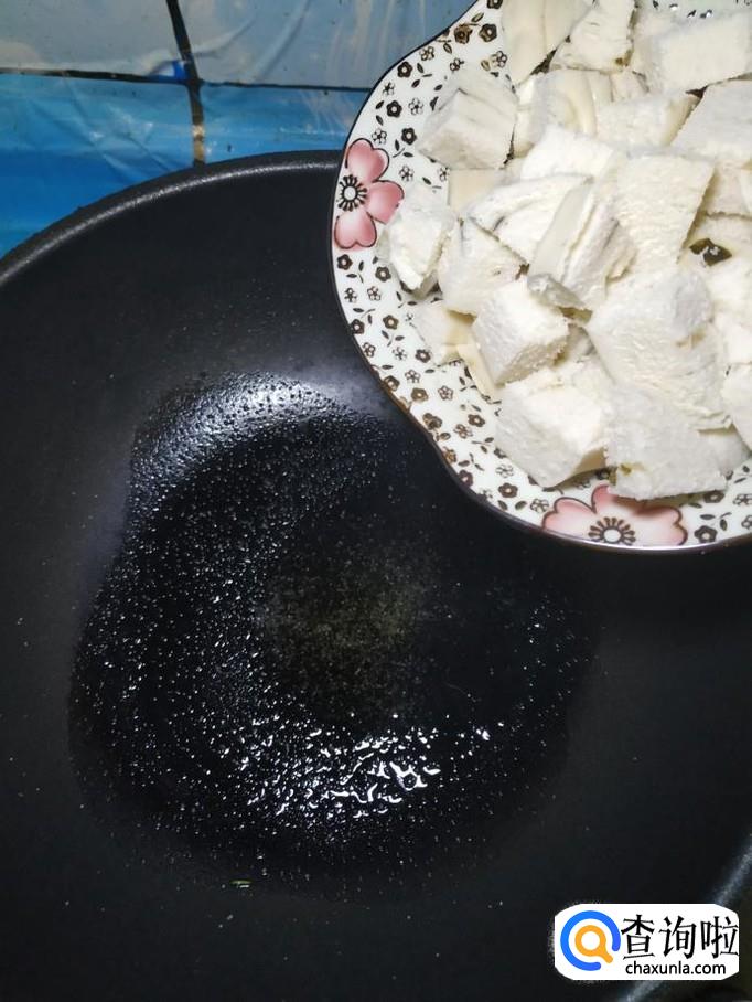 炒锅中放入适量油,再撒入适量食盐,油温七成热,将切好的馍块倒入锅中,翻炒均匀。