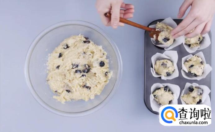 加入新鲜蓝莓100g,搅拌至面糊状。