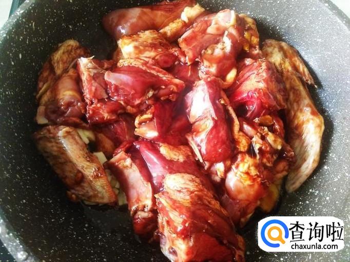 再把腌制好的鸭肉铺在上面。