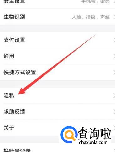 在设置页面,点击“隐私”,如图所示。