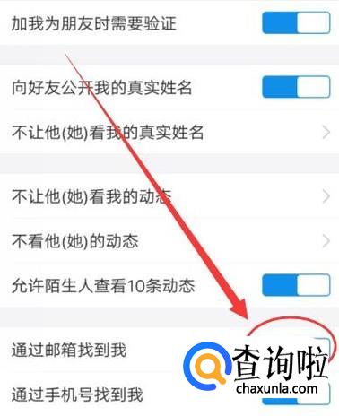 进入之后,即可看到“通过邮箱找到我”开关,如图。