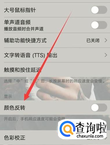 进入之后,将颜色反转关闭掉,即可解决手机屏幕发黄颜色不正的问题,如图所示。