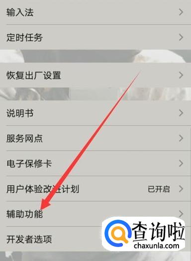 进入之后,点击“辅助功能”,进入下一页面,如图所示。