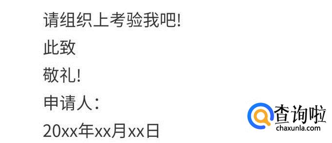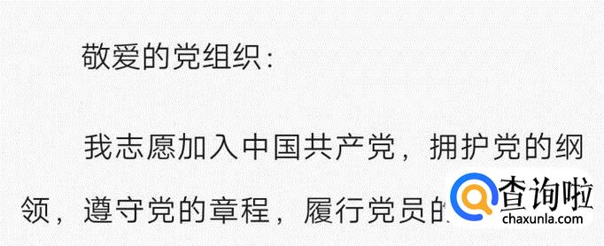 称谓。申请人对党组织的称呼,如“敬爱的党组织”,顶格写在第一行,后面加冒号。