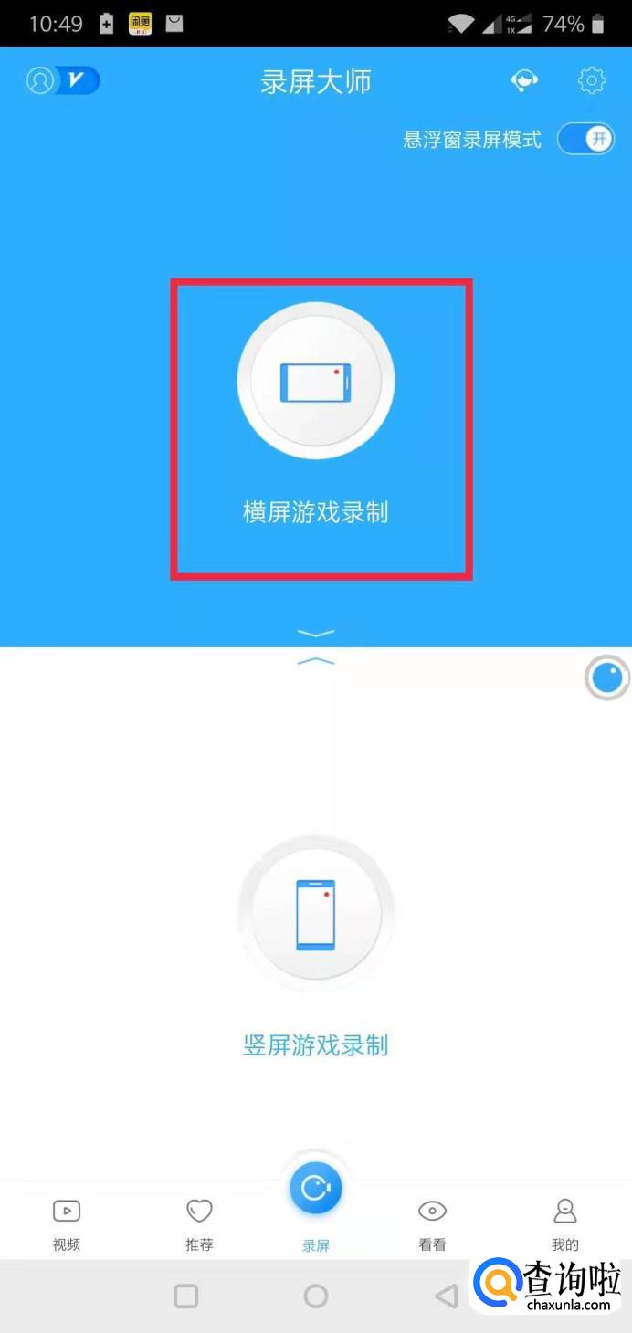 回到录屏大师APP,我们选择横屏游戏录制。