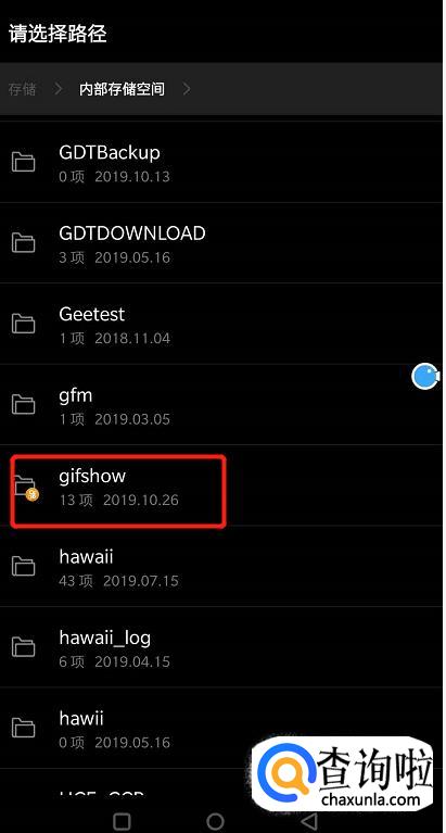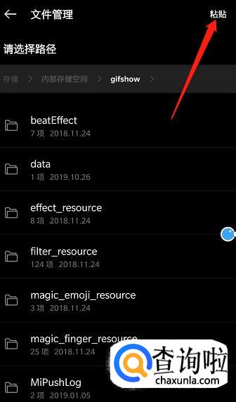 点击了剪切之后页面就会弹出来一个位置选择,我们找到“gifshow”,这个就是快手的文件夹,然后点进去,直接粘贴。