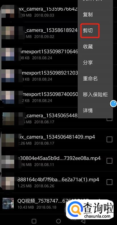 找到我们录制的视频后,点击剪切,我们需要把这个视频移到快手的文件夹里。