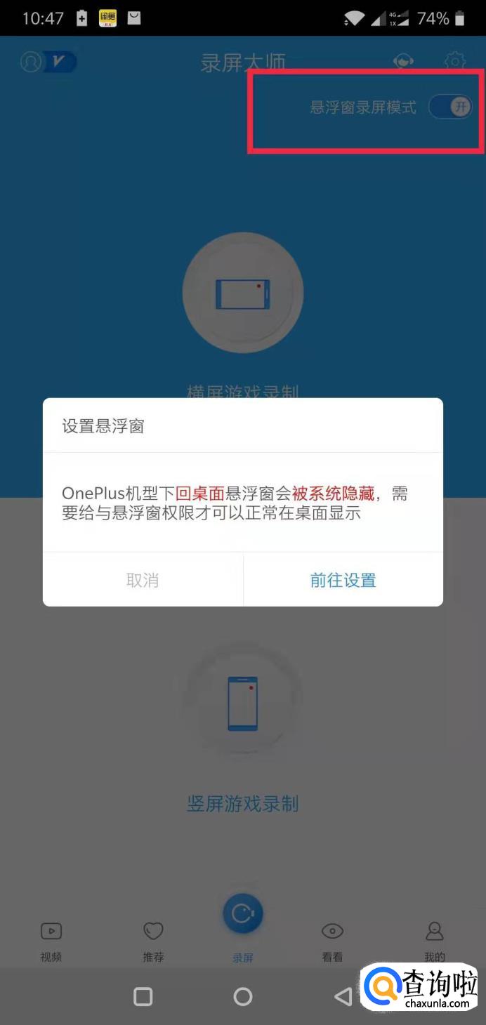 安装完毕之后打开录屏大师,然后设置悬浮窗录屏模式。直接前往设置。