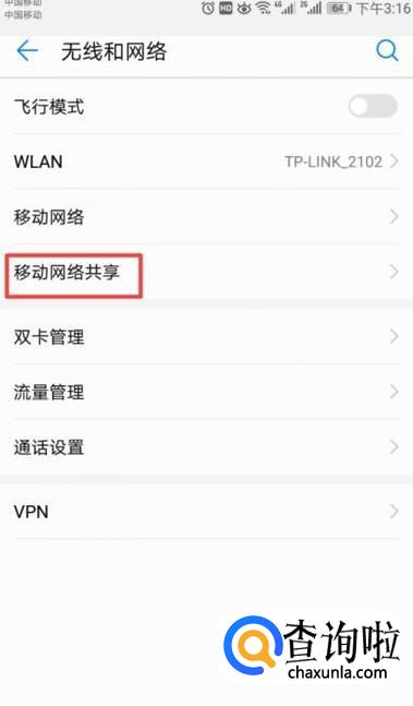 弹出的界面,我们点击移动网络共享;