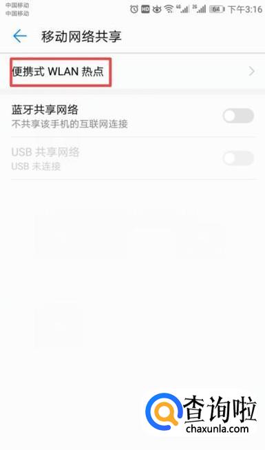 弹出的界面,我们点击便携式WLAN热点;