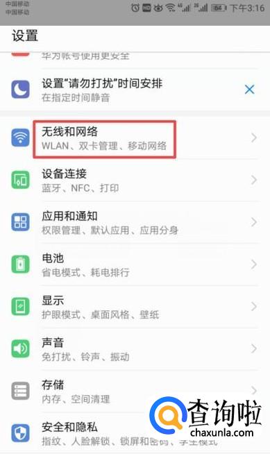 进入设置后,我们点击无线和网络;