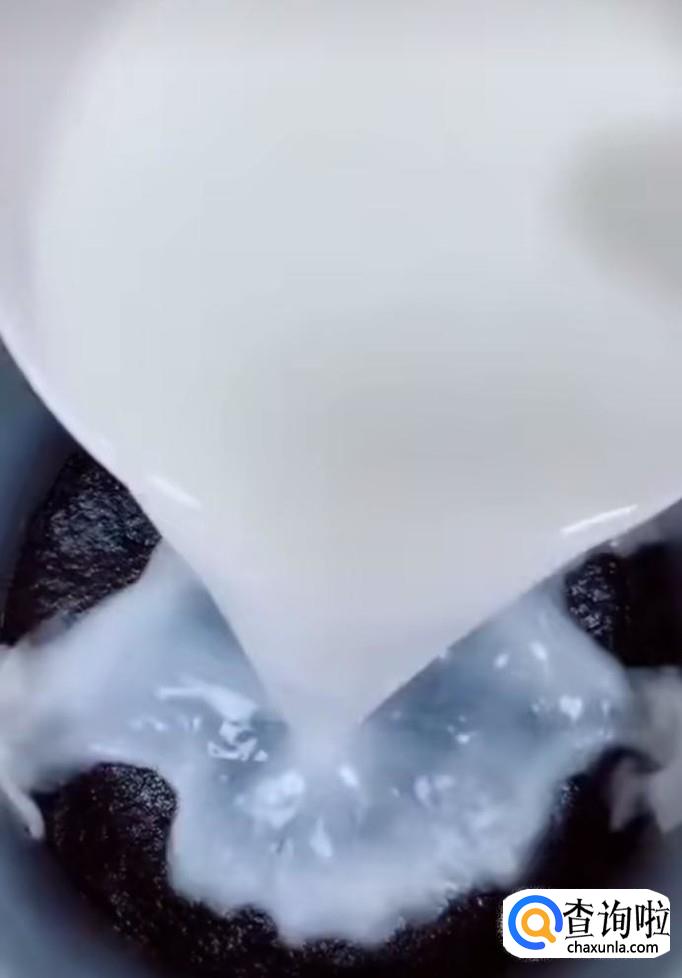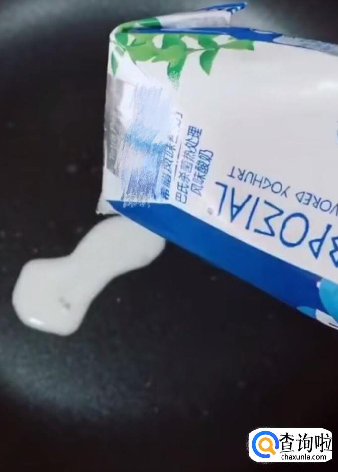 接着我们将250g酸奶倒入锅中,加入20g白凉粉,20g白糖,熬至浓稠关火,倒入模具中