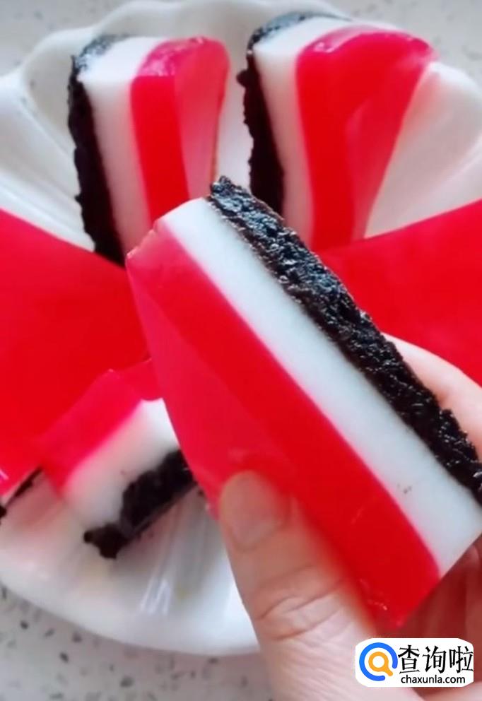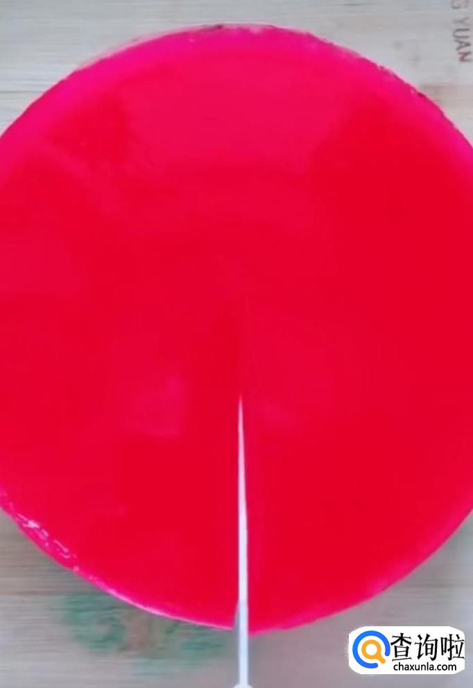 最后放凉,放入冰箱冷藏4个小时,取出用刀切开