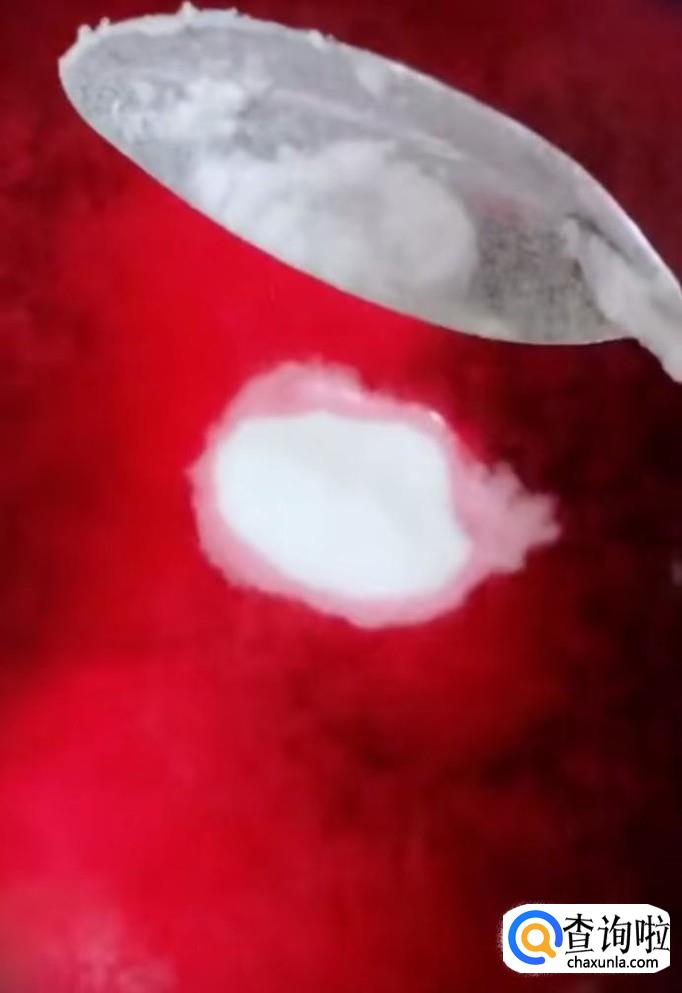 然后我们将250g西瓜汁倒入锅中,加入20g白凉粉,20g白糖,煮开关火,倒入模具中