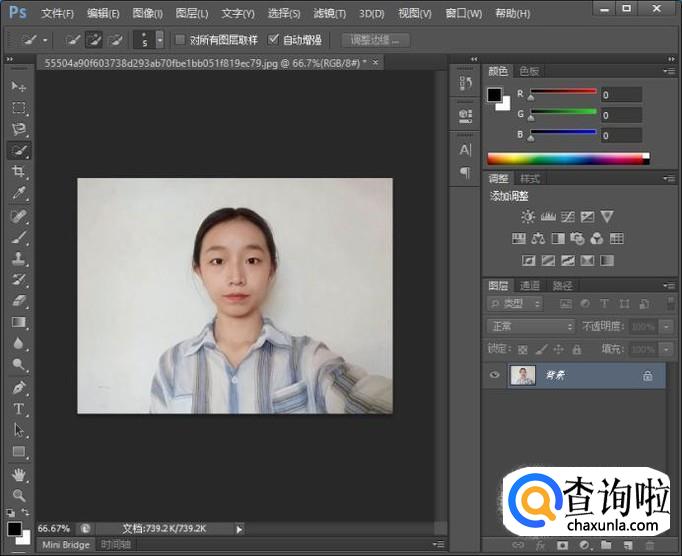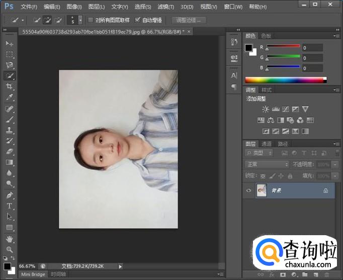 我们先打开Photoshop软件,打开素材,我们会发现照片不是正的。