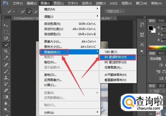 然后在下拉列表中找到“图像旋转”中的“90度顺时针”,并且点击它。