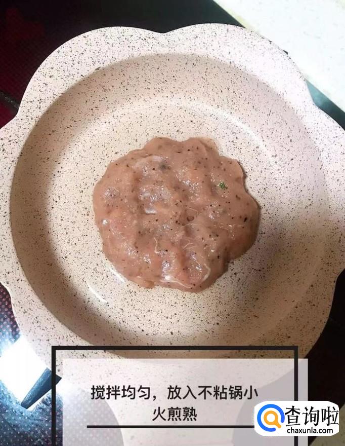 然后在锅中放入适量的食用油,待油冒烟,把肉泥倒进去,烙成饼,如下图所示。