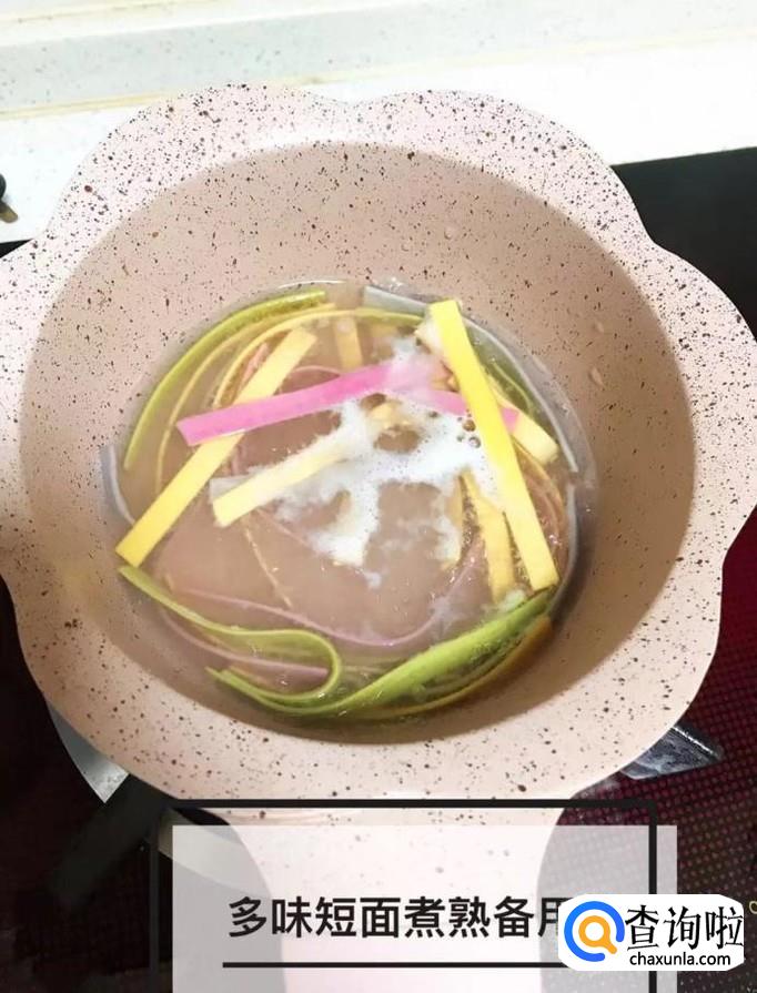 然后锅中放入适量的清水,待水烧开,把面条煮好,捞出控干,如下图所示。