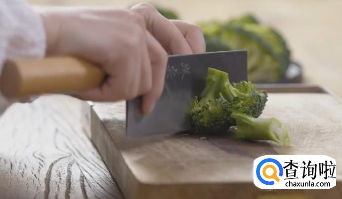 首先,把已洗净的西蓝花顺着纹路切小朵。