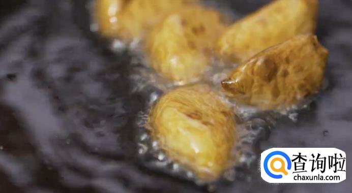 热锅起油,放入蒜瓣炸至微微变黄。