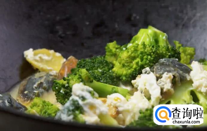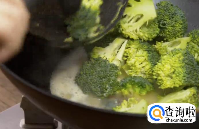 大火煮沸后撒盐调味,再放入西蓝花。