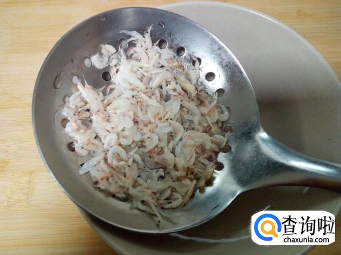 虾皮用水冲洗干净,控干水分。切好葱,姜备用。
