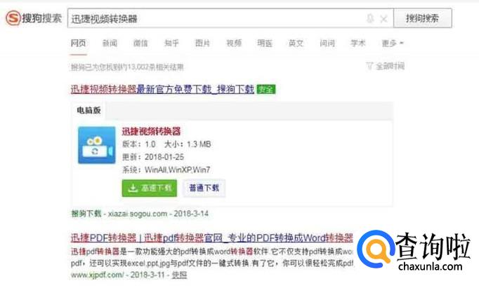 首先上搜狗搜索迅捷视频格式转换器,点击链接进入下载站中下载安装视频格式转换器,