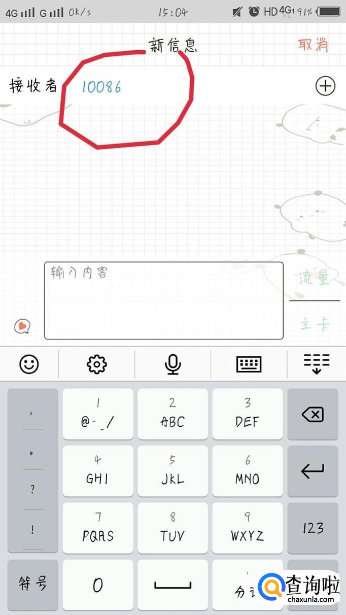 点击新建信息,进入编辑页面,在收件人那一栏里填写“10086”