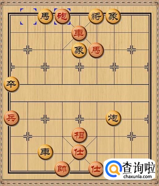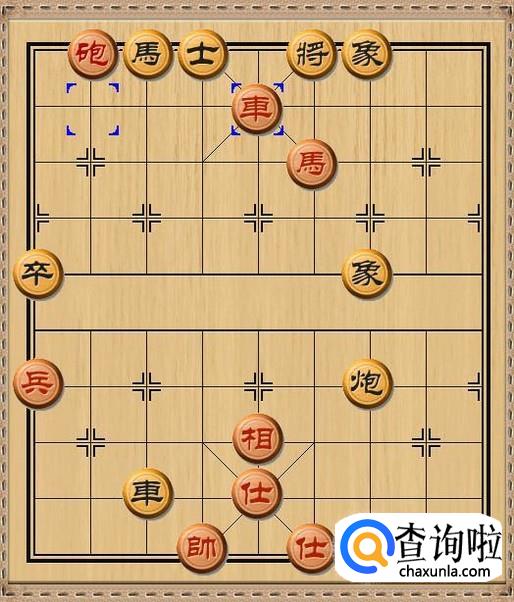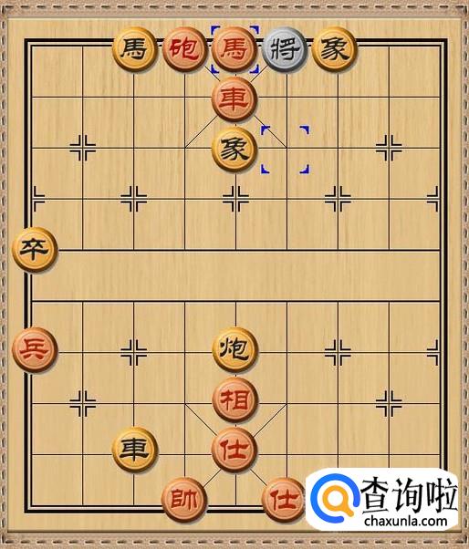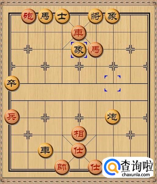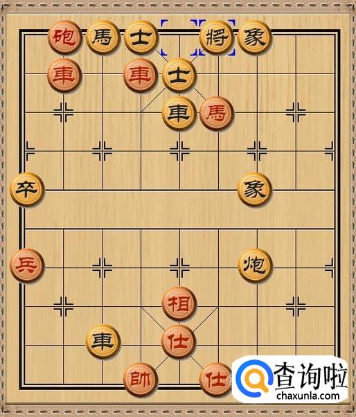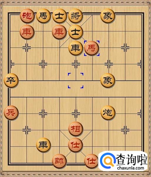 由于黑方车要保护中路的士,所以不便移开来杀掉红方马。于是,黑方将5平6,黑方老将向右移动一步,避开红方挂角马的将军。如图所示。