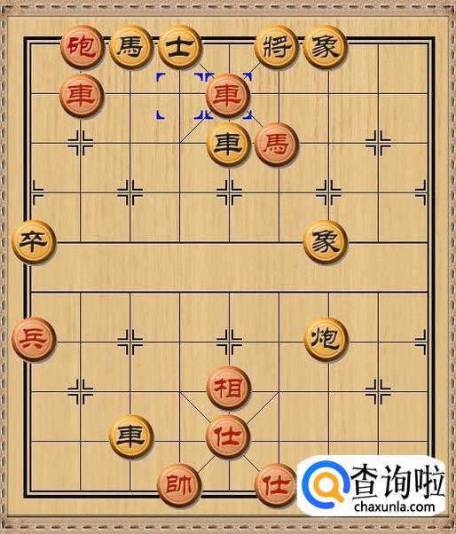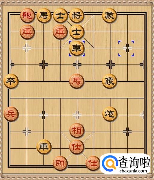 红方车八平五,红方的另一个车早有准备,立刻杀掉了黑方回防的车,红方控制了黑方的战略要地:九宫之中。如图所示。