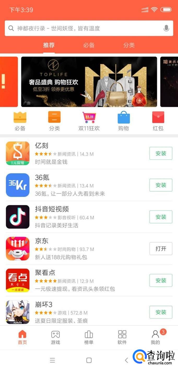 在我们使用软件时尽量要在应用商店中下载,以防下载了带有病毒的软件,危害我们手机的安全。