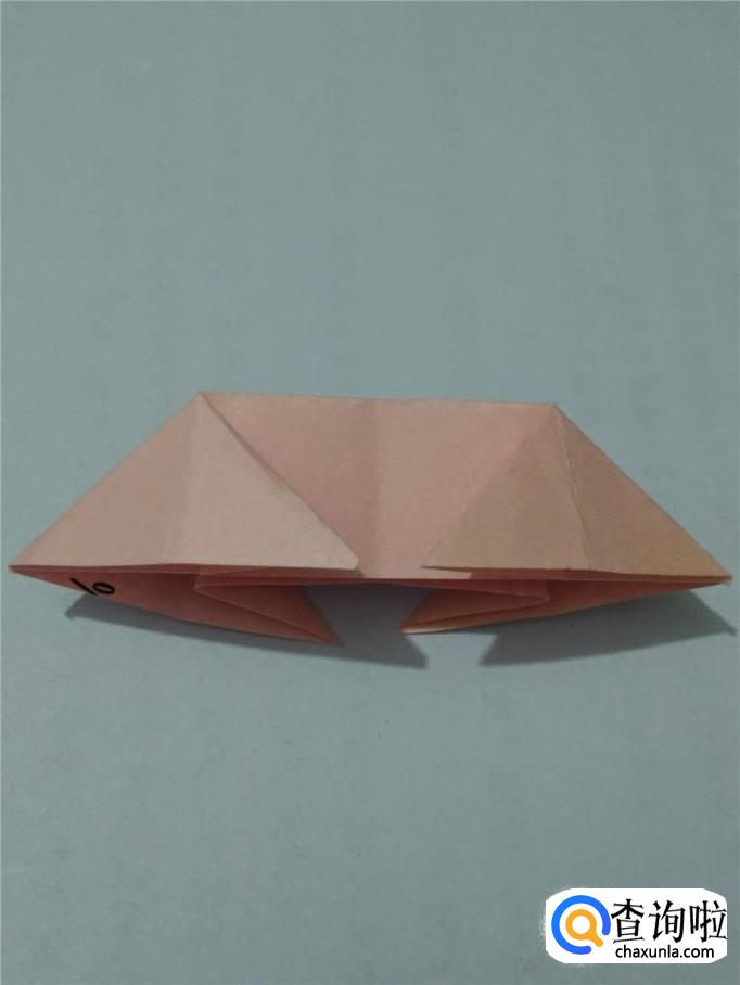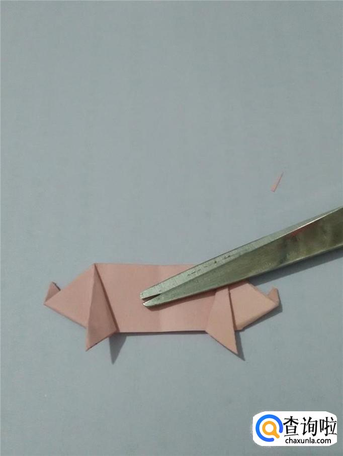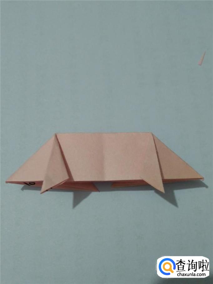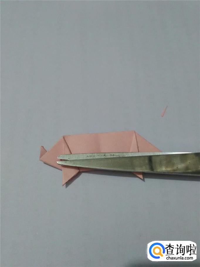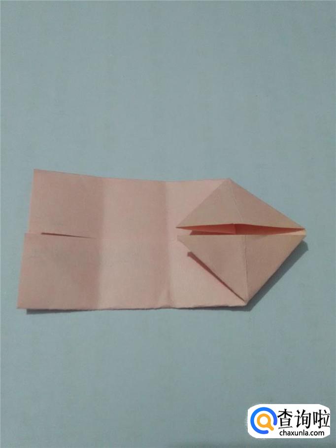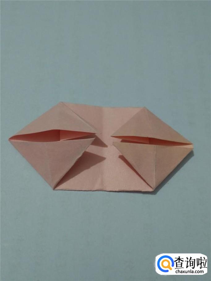 把左边的小角向后折,露出的小尖是小猪的鼻子。