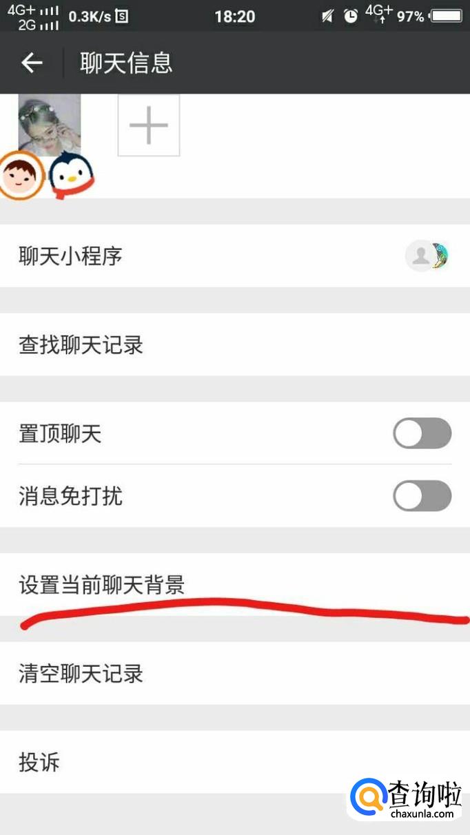 然后点击"设置当前聊天背景",就可以进行聊天背景图片设置了。