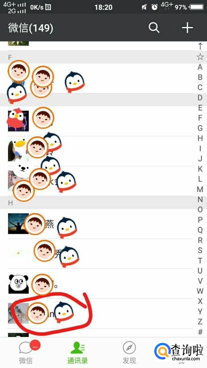 然后,在通讯录中找到一个你想要设置聊天背景的人,点击她的头像。
