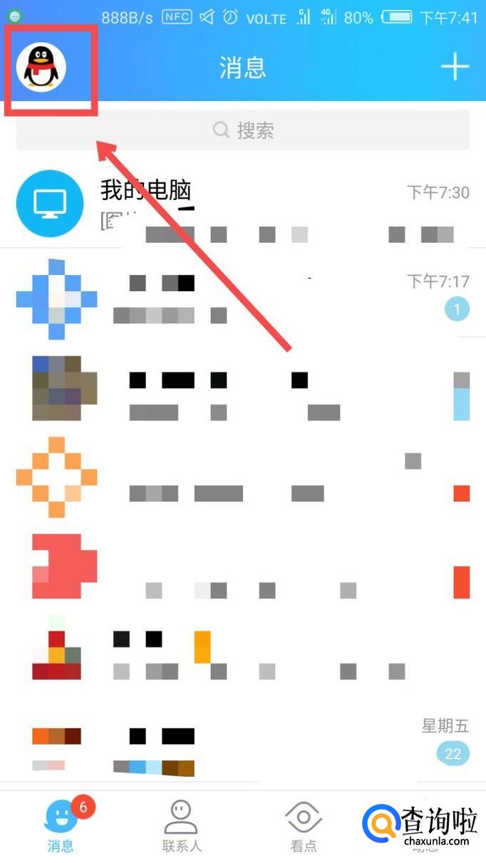 首先我们打开手机QQ,在界面左上角找到你个人的头像,点击进入。