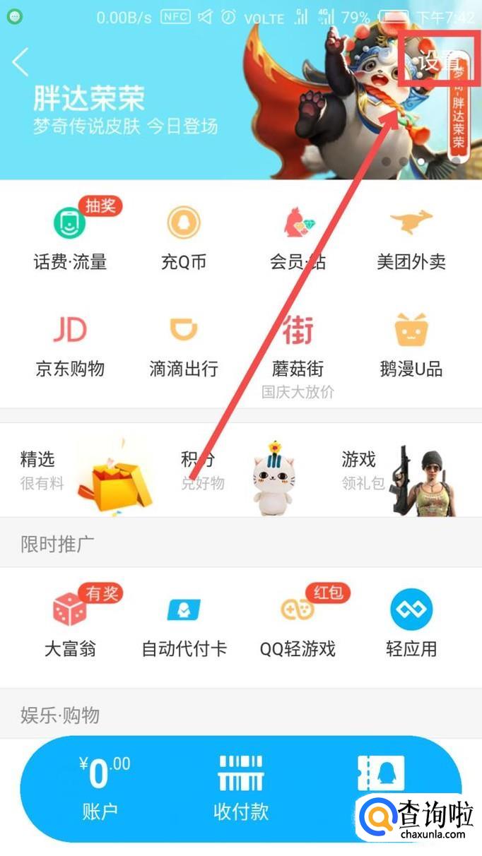 然后在界面的右上角找到【设置】,点击进入。