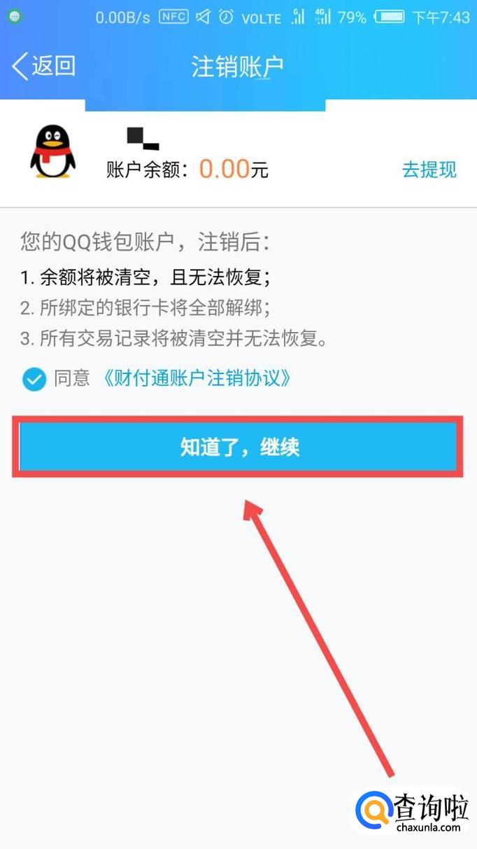 然后系统会向你说明注销QQ实名认证信息的后果,点击【知道了,继续】即可,如图所示,这样我们就成功的注销掉了手机QQ的实名认证信息了。